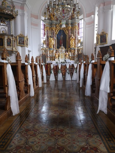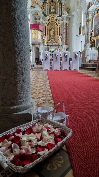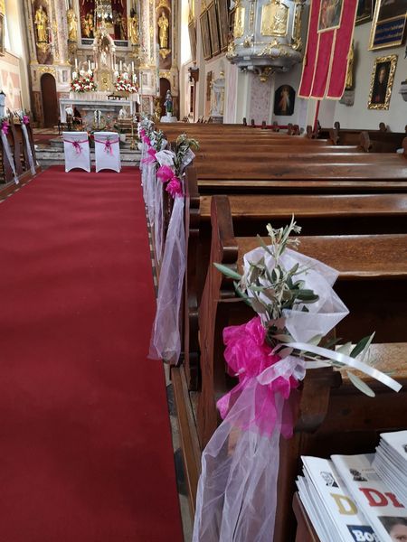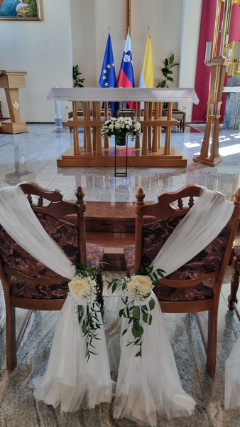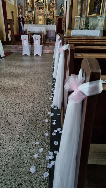 Za lepo in čutečo poroko mora biti tudi poročni prostor lepo okrašen. Vso dekoracijo pridemo okrasiti na vašo lokacijo. Bodisi je to cerkev, gostilna ali okrasitev civilnega obreda.